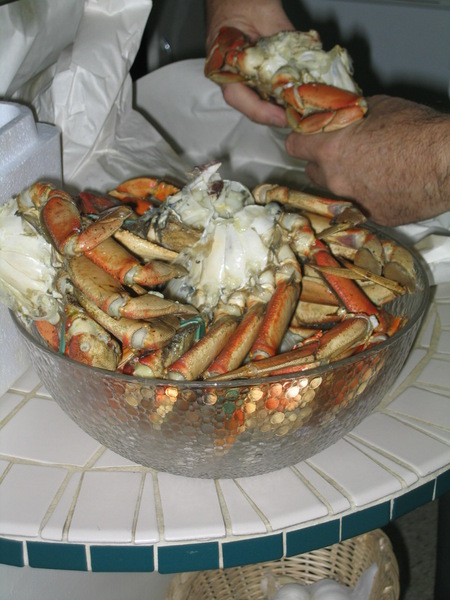 By the time the October 2004 trip rolled around, I hadn't had fresh crab in probably six years. Also, all of my surviving grandparents were going to be in town for Thanksgiving. I had suggested to mom before I came out that crab might be a really good thing to have while I was out there.