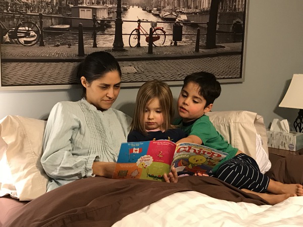 Reading to the kids before bed, December 2017. This is well past both of the kid's bedtimes. I don't know if I've mentioned the marshmallow thing before. I should at some point.